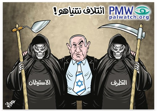 Fatah cartoon demonizes Netanyahu as being in a “coalition” with the grim reaper