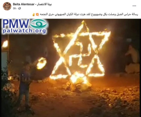Israeli criticism of Palestinians in the town of Beita who burned an effigy of the Star of David with a Nazi swastika has prompted an outrageous response from the organizers: “You [Israelis] are worse than Hitler and the Nazis … Yes, we want to burn you alive.”