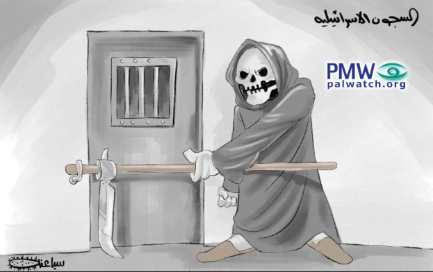 Palestinian Authority cartoon presents Israeli prison with the Grim Reaper locking cell door