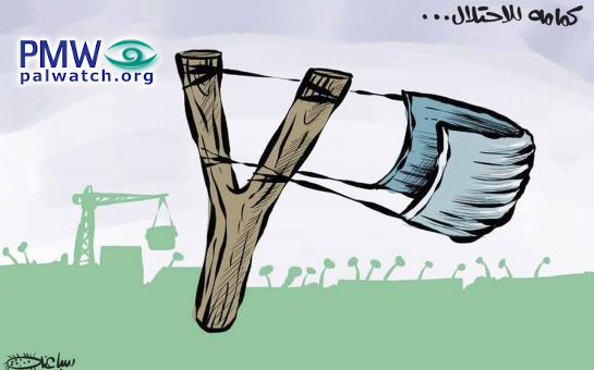 Palestinian Authority cartoon shows a slingshot with a medical mask in place of a sling