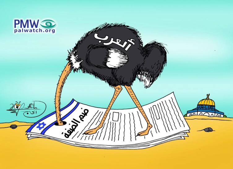 Fatah cartoon against normalization depicts Arabs as ostriches with their heads in the ground