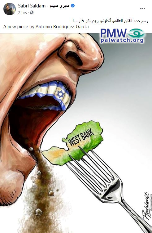Fatah official posts cartoon of Israel swallowing the West Bank