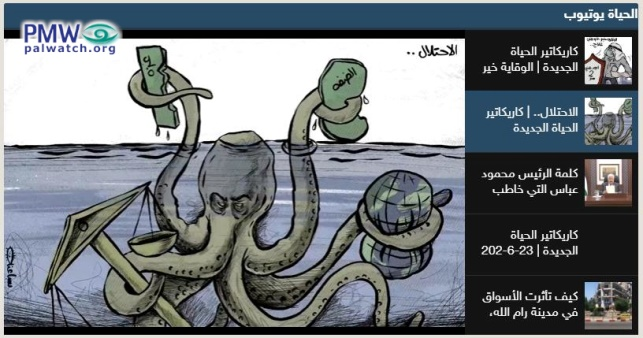 Palestinian Authority cartoon depicts Israel as an octopus holding the globe in its tentacles