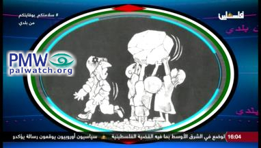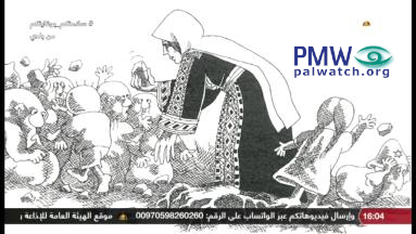 Official PA TV narrator girl: “Naji [Al-Ali] invented the character of Handala (i.e., well-known Palestinian cartoon character who symbolizes the Palestinian refugee issue), who was in his drawings regularly and represents a 10-year-old boy who turns his back to the viewers… Naji had another character who returned again and again in his drawings as the figure of the Palestinian woman, whom Naji called Fatima. She is a character who is not humiliated. Her vision is very clear on everything regarding the cause and the way of its resolution – the opposite of the figure of her husband, who breaks down frequently.”