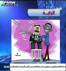 The PA TV program shows cartoons from newspapers from around the Arab world. This cartoon was taken from the newspaper Al-Rayah (Qatar).