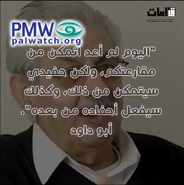 A picture of an elderly Abu Daoud is seen with the following quote of his directed at Israel.