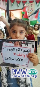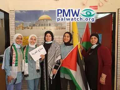 Children were also taught to praise the escaped terrorists as “lofty lions” who “let the enemy taste from the bitter cup” as is seen in pictures of young girls from the Nusayba Al-Mazeniya Elementary School for Girls: