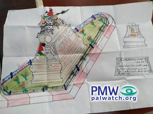 This monument in honor of terrorist murderer Kamal Abu Wa’er exemplifies the great efforts the PA and Fatah spend on inculcating in the minds of Palestinians the ideology that terrorist murderers are heroes and role models.