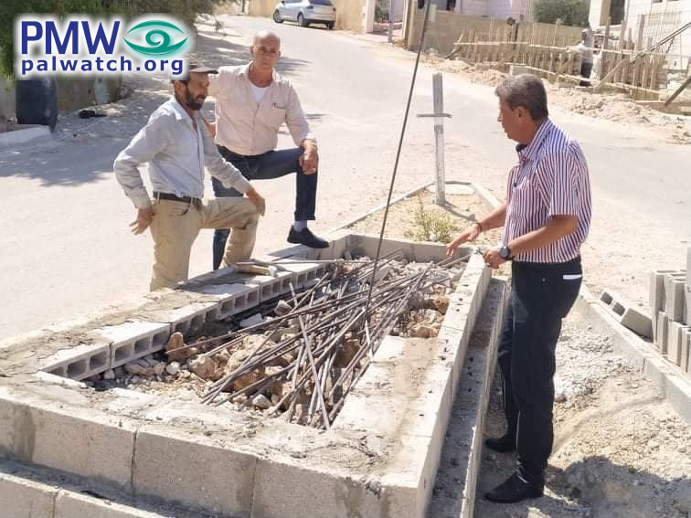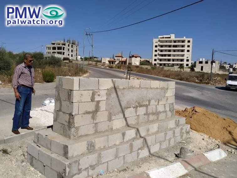 Posted text: “The end of the first stage of establishing the monument in memory of Martyr prisoner Kamal Abu Wa’er (i.e., terrorist, involved in murder of at least 4) in Jenin
