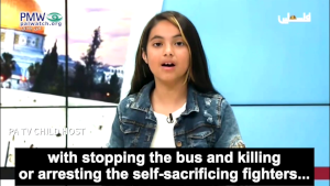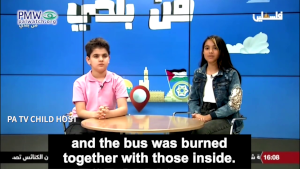 On the show From my country, which is aimed at and hosted by children, several kids praised terrorist murderer Dalal Mughrabi, who led the murder of 25 adults and 12 children when she and other terrorists hijacked an Israeli bus full of civilians and killed many of the passengers in 1978.