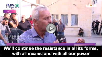Abu Aita explained that Palestinians “aspire to true popular resistance” –implying non-violent means. However, this is not only ironic but also untrue, as Palestinian Media Watch has documented that whereas “popular resistance” in Palestinian terminology at times is used to refer to peaceful protest, it is also used to refer to deadly terror attacks and terror waves. For example, Mahmoud Abbas defined as “peaceful popular” the murderous terror during the 2015-2016 terror wave (“The Knife Intifada”), in which 40 people were killed (36 Israelis, 1 Palestinian, 2 Americans and 1 Eritrean) and hundreds wounded in stabbings, shootings, and car ramming attacks. Abbas said: "We want peaceful popular uprising, and that’s what this is." At the time Abbas said this, 14 Israelis had already been murdered.