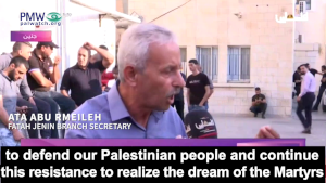Fatah Jenin Branch Secretary Ata Abu Rmeileh: “We’ll continue the resistance in all its forms, with all means, and with all our power to defend our Palestinian people and continue this resistance to realize the dream of the Martyrs and take revenge for the pure blood that flows every morning throughout our Palestinian areas.”