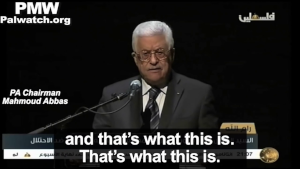 PA Chairman Mahmoud Abbas: “No one called for this uprising (i.e., Oct. - Nov. 2015 terror campaign) and no one asked for it. It stemmed from the hearts of the young who have seen everything with their own eyes. They have seen the oppression, the settlements and they have seen the attacks by the herds of settlers, and therefore they have done what they have done (i.e., 14 killed by stabbings and shootings). We said to everyone that we want peaceful popular uprising, and that’s what this is. That’s what this is. However, the aggression of firing bullets has come from the Israelis.”