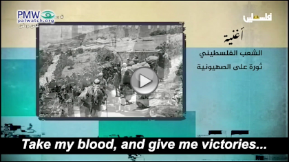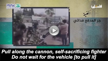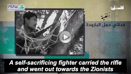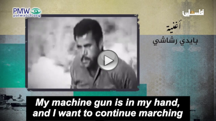 Palestinian Media Watch has exposed that the PA actively promotes the “armed struggle” and glorifies the use of terror against Israel via songs broadcast on official PA TV. A PA TV quiz included numerous songs that are “a basic part of our [Palestinian] culture and express our national identity.” Songs that “still fascinate us with values and meanings.” Among the lyrics in the quiz songs were: