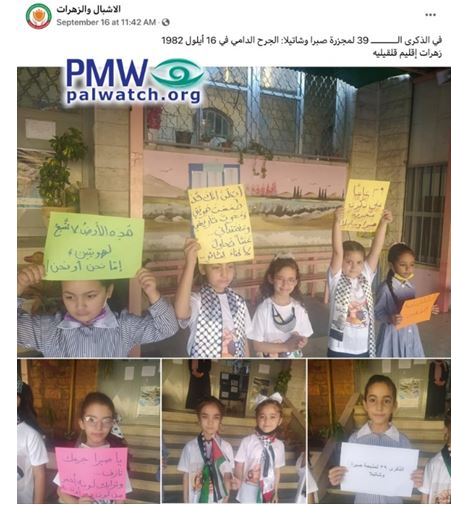 Young girls in Fatah's children's branch mourn Sabra and Shatila massacre with anti-Israel signs