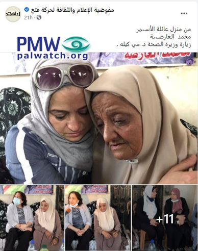 The images show PA Minister of Health Mai Al-Kaila visiting the home of terrorist Muhammad Ardah.