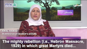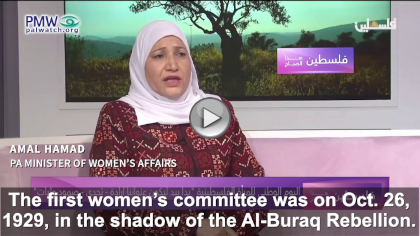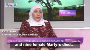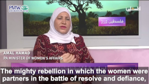 Speaking on occasion of national Palestinian Women’s Day last week, PA Minister of Women’s Affairs Amal Hamad highlighted “female Martyrs” and a mass murderer as proof that there is gender equality in Palestinian society.