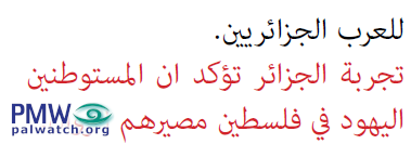 Ultimate justice will be achieved with the expulsion of all the Jews. Fatah presents Algeria as the historical precedent: “At the end of the period of French colonialism… they all fled to France... Algeria’s experience assures that the Jewish settlers in Palestine will disappear in the end.” (Waed, Issue 28, p. 25, red emphasis appears in the original.)