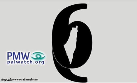 The image shows the number “6” with the PA map of “Palestine” that presents all of Israel together with the PA areas as “Palestine” inside of it. The image apparently refers to how Israel banned six Palestinian NGOs for being arms of the Popular Front for the Liberation of Palestine terror organization in October 2021