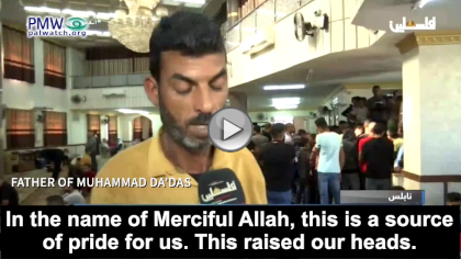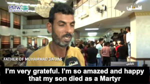 Official PA TV newsreader: “Our people in Nablus accompanied to burial Martyr child Muhammad Da’das, who ascended to Heaven [killed] by the occupation bullets yesterday during confrontations…”