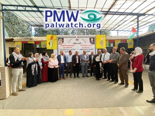 The official PA daily also reported from the event, adding this image and text explaining the PA Ministry of Education and Fatah’s involvement in and responsibility for the event: