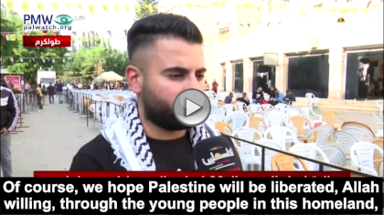 At an event marking the anniversary of the Palestinian declaration of independence of 1988, a young man vowed that the young Palestinians will “liberate Palestine from the sea to the river”: