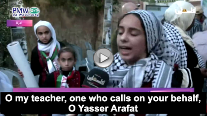 Girl: “O my teacher, one who calls on your behalf, O Yasser Arafat