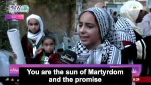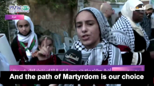 A fresh example of educational efforts to cement the ideal of “Martyrdom-death” in the minds of the population is this young girl reciting a poem with the pledge: “the path of Martyrdom is our choice”: