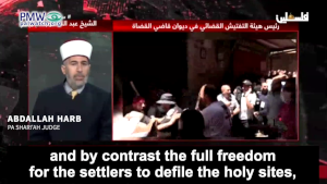 PA Shari’ah judge’s antisemitic claim: Israel is letting “settlers defile” and “desecrate” the Al-Aqsa Mosque