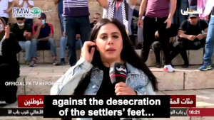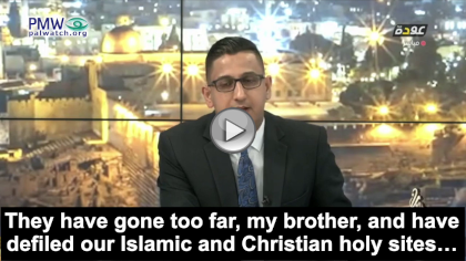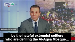 Official PA TV reporter: “The defiling of the places of worship by the occupation and its settlers, in all forms of provocation, is being carried out while ignoring any of the international agreements that determine that the holy sites and places of worship must be protected.”