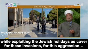 PA Mufti Muhammad Hussein: “Jerusalem and its holy sites are being targeted… They are attempting to give a Jewish character to the blessed Al-Aqsa Mosque, while exploiting the Jewish holidays as cover for these invasions, for this aggression…