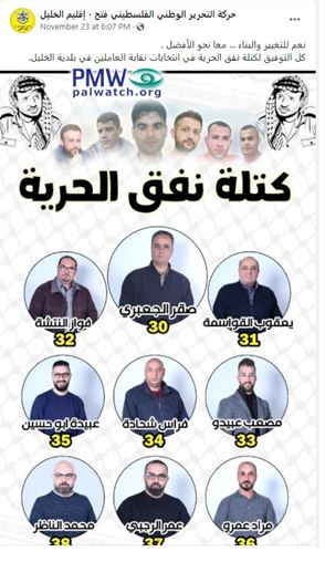 Image and text posted on the Facebook page of the Fatah Movement – Hebron Branch