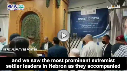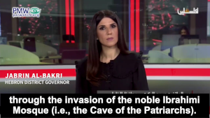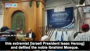 Official PA TV reporter: “The Hebrew media published the video from the noble Ibrahimi Mosque (i.e., the Cave of the Patriarchs), and we saw the most prominent extremist settler leaders in Hebron as they accompanied this extremist [Israeli President Isaac Herzog] and defiled the noble Ibrahimi Mosque.”