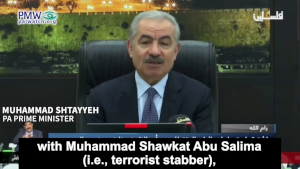 PA Prime Minister Shtayyeh presents stabber and car rammer as victims of Israel's “terror and cold-blooded murder”