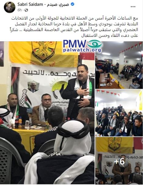 Images and text posted on the Facebook page of Fatah Central Committee Deputy Secretary Sabri Saidam