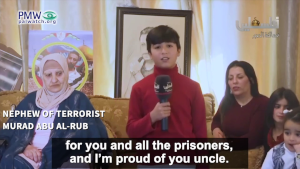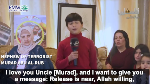 Nephew of terrorist Murad Abu Al-Rub: “I love you Uncle [Murad], and I want to give you a message: Release is near, Allah willing, for you and all the prisoners, and I’m proud of you uncle.”