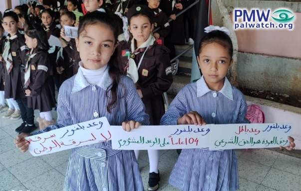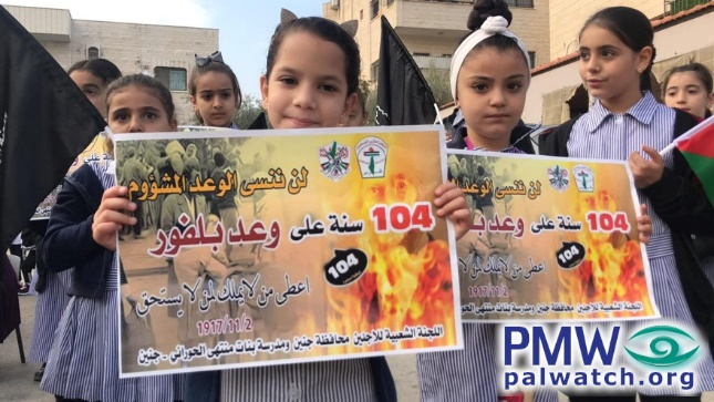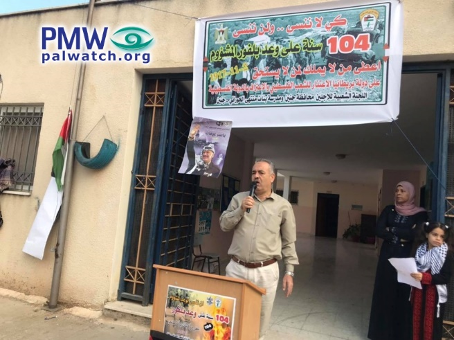 In Ramallah the [PA] Ministry of Education, the PLO Department of Refugee Affairs, and the Supreme Committee to Commemorate Nakba Day (see note below -Ed.) marked the anniversary of the Balfour Declaration.