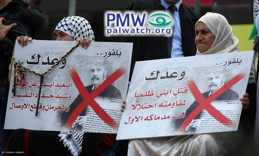 PA and Fatah leaders are so adamant about this that they advocate dying as “Martyrs” for “Palestine” if necessary, as expressed here by Fatah Central Committee member Tawfiq Tirawi, who posted a copy of the declaration and his pledge to fight it: