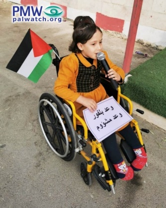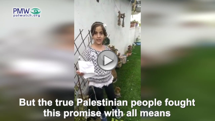 Girl from Fatah calls Balfour “a traitor of humanity,” vows to “fight… with the blood of Martyrs” to erase Israel