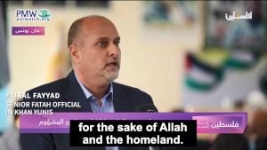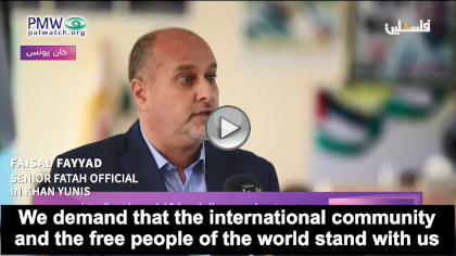 Senior Fatah official in Khan Yunis Faisal Fayyad: “We demand that the international community and the free people of the world stand with us to restore our rights in this usurped land. It was stolen in 1917 in the cursed Balfour Promise (i.e., Declaration), and also in the May 15, 1948 Nakba (i.e., “the catastrophe,” the establishment of Israel). We all emphasize that we are still defending this stolen land, and that we will give our blood and the blood of our children and our families for the sake of Allah and the homeland.”