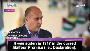 Fatah: “The Balfour Promise was and will remain the most shocking crime in modern human history” whose goal was “to empty the land of Palestine of its people” and “build a military apparatus” so that the Jews “would fulfill a role for the global colonialist system”