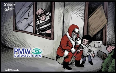 Palestinian Authority publishes cartoon of an "Israeli settler" stealing the house of a Palestinian child trying to celebrate Christmas