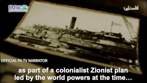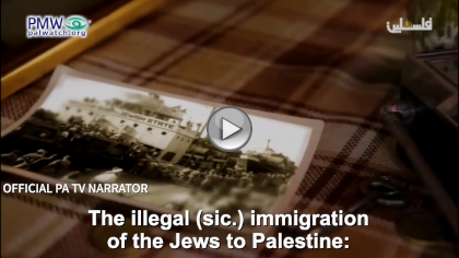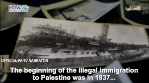 Palestinian Media Watch reported recently that official PA TV broadcast a filler between programs, stating that all Jewish immigration to what is today Israel was illegal and carried out according to a “colonialist Zionist plan.”
