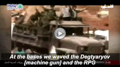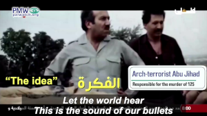 Another music video showed images of arch-terrorist Abu Jihad - Arafat’s deputy and head of the PLO terror organization's military wing – who was responsible for the murder of 125. The song promised to continue violence, praising “the rifle, blood, and bullets”: