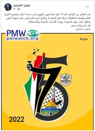 Headline: “Fattouh on the anniversary of the Intilaqa (i.e., the anniversary of “the Launch” of Fatah, counted from its first terror attack against Israel): Fatah is continuing its revolution until liberation”