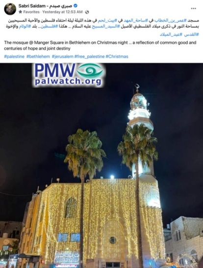 #palestine #bethlehem #jerusalem #free_palestine #Christmas”[Facebook page of Fatah Central Committee Deputy Secretary Sabri Saidam, Dec. 25, 2021]
