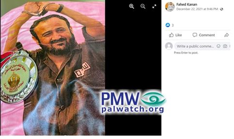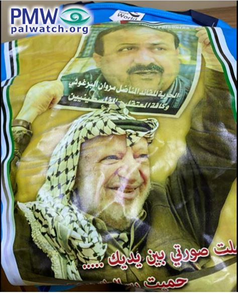 The above image shows a poster of former PLO and PA Chairman Yasser Arafat, which has been altered to have him holding a poster featuring Barghouti’s picture.