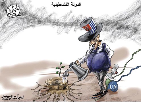The recent American-Israeli campaign to wave [a threat to] stop financial aid because the Palestinian nation is applying to the UN – the world's address to solve problems through international law and legitimization – blatantly exposes the American-Israeli conspiracy against Arab interests...