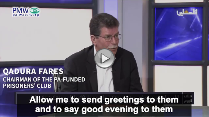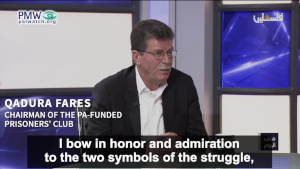 Chairman of the PA-funded Prisoners’ Club Qadura Fares: “Allow me to send greetings to them and to say good evening to them and to all their brothers and comrades: the male and female prisoners. I bow in honor and admiration to the two symbols of the struggle, these two heroic important leaders... They have become symbols for the entire Palestinian people.”