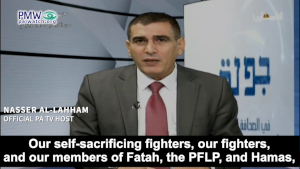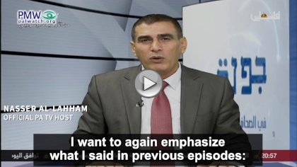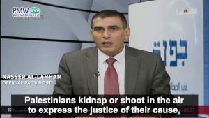 Official PA TV host Nasser Al-Lahham: “I want to again emphasize what I said in previous episodes: Not a single Palestinian has carried out a single operation (i.e., terror attack) in order to kill civilians, but all the operations that the Zionist parties carried out were in order to kill [civilians]… Palestinians kidnap or shoot in the air to express the justice of their cause, while the Israelis shoot to kill.”